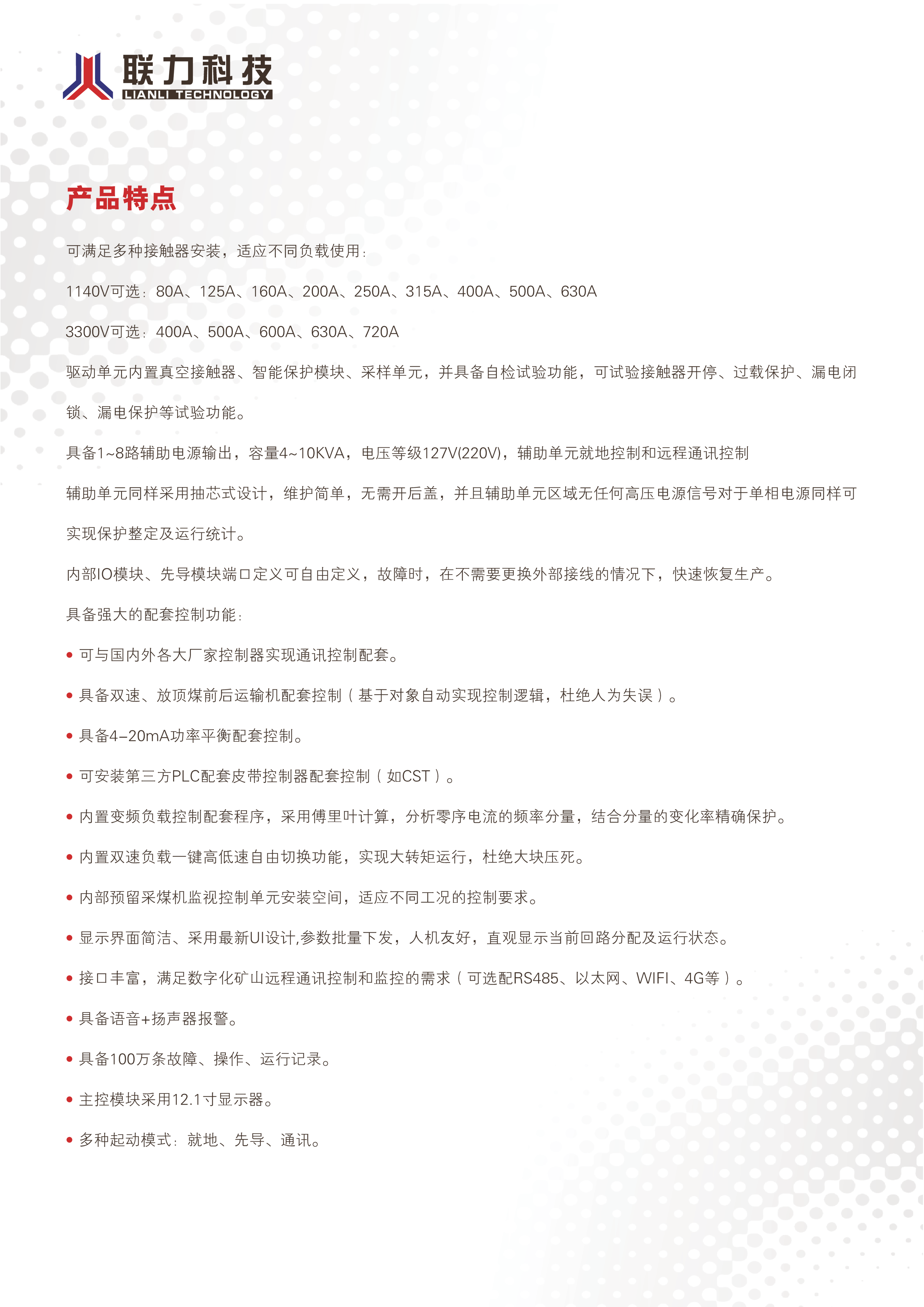 综采工作面集散控制系统 智采通系统 地面集控系统 顺槽集控系统 转载点集控系统 采煤机电控系统 三机电控系统 液压泵站控制系统 工作面通信系统 煤矿用带式输送机保护装置 无线数据传输监控系统 自移机尾(马蒂尔)自控系统 支架电液控制系统 工作面机器视觉系统 连掘面集控系统 精确人员定位系统 单轨吊推移系统 煤矿用带式输送机保护装置 工作面设备列车成套设备 设备列车推移控制系统