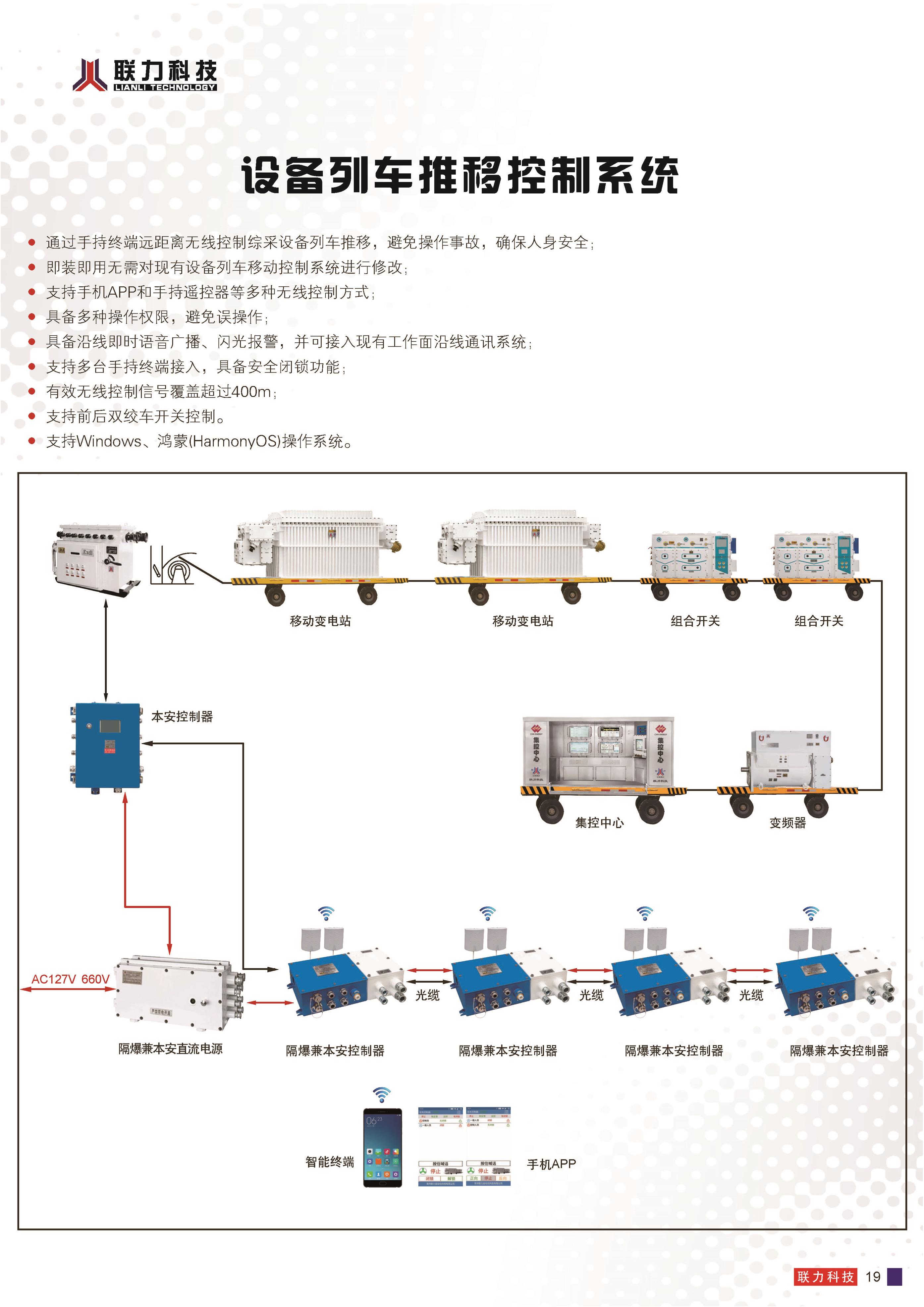 综采工作面集散控制系统 智采通系统 地面集控系统 顺槽集控系统 转载点集控系统 采煤机电控系统 三机电控系统 液压泵站控制系统 工作面通信系统 煤矿用带式输送机保护装置 无线数据传输监控系统 自移机尾(马蒂尔)自控系统 支架电液控制系统 工作面机器视觉系统 连掘面集控系统 精确人员定位系统 单轨吊推移系统 煤矿用带式输送机保护装置 工作面设备列车成套设备 设备列车推移控制系统